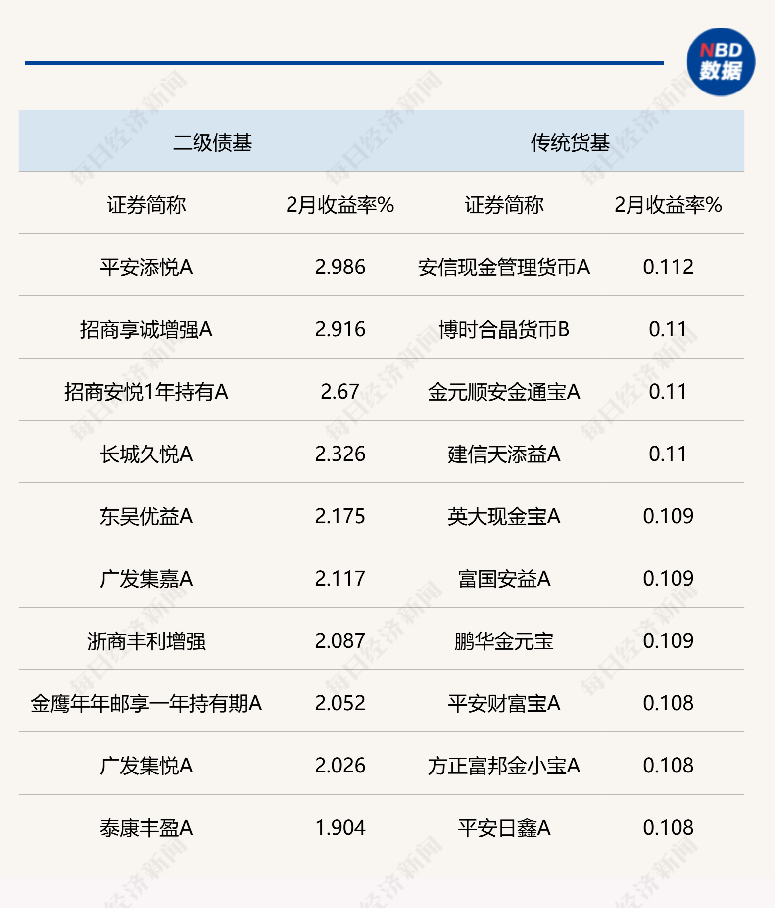 说明:2月债基部分头部业绩产品统计 来源:Wind